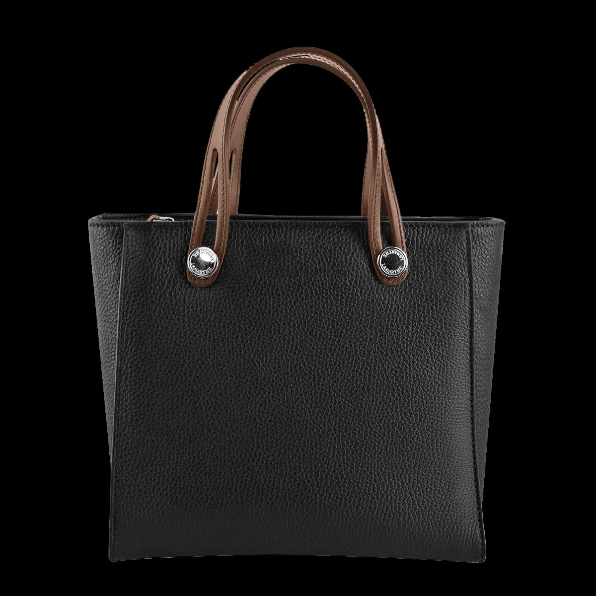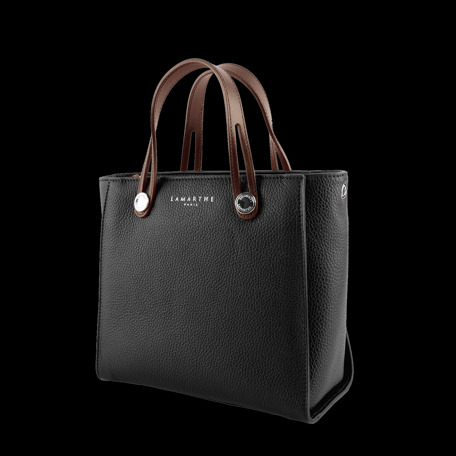 The IF114 model from the FIDELE collection is a handbag. Full-grain tumbled cowhide leather with 100% polyester jacquard lining Zip closure Interior zipped patch pocket with leather key clip and carabiner Interior patch pockets Adjustable shoulder strap with carabiner